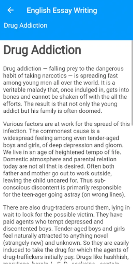 This application is for 1 to 10th students. It helps all the students to improve their essay writing in English and English vocabulary. Written English is the way in which the English language is transmitted through a conventional system of graphic signs. Compare to spoken English. The earliest forms of written English were primarily the translations of Latin works into English in the ninth century.