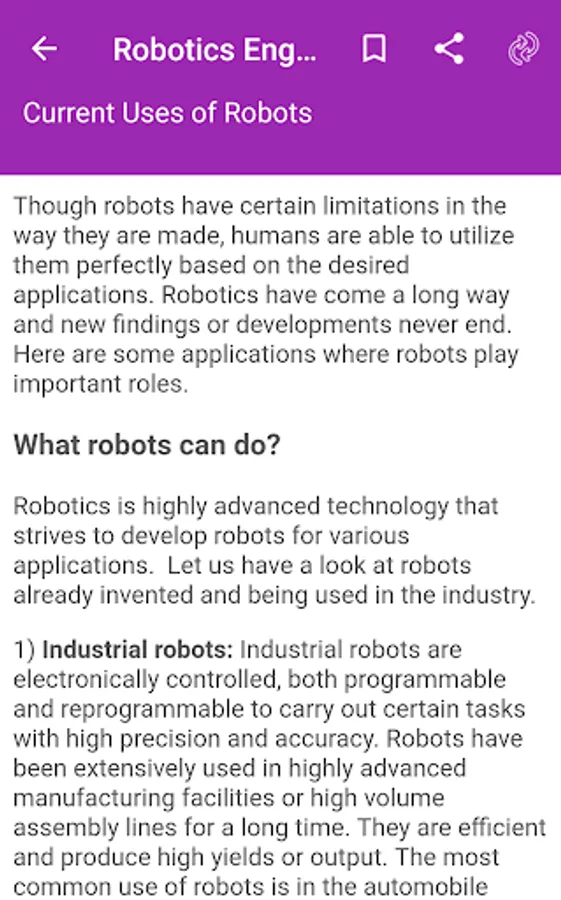 You can easily Learn Robotics Engineering by using this app. Basic Robotics Engineering is very easy to learn if you interested in Robotics Engineering. This app has basic Robotics Engineering notes & tutorial.