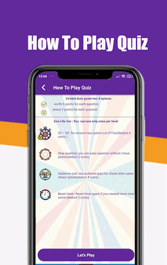 - 50 – 50 : for remove two option out of Four(deduct 4 coins ).