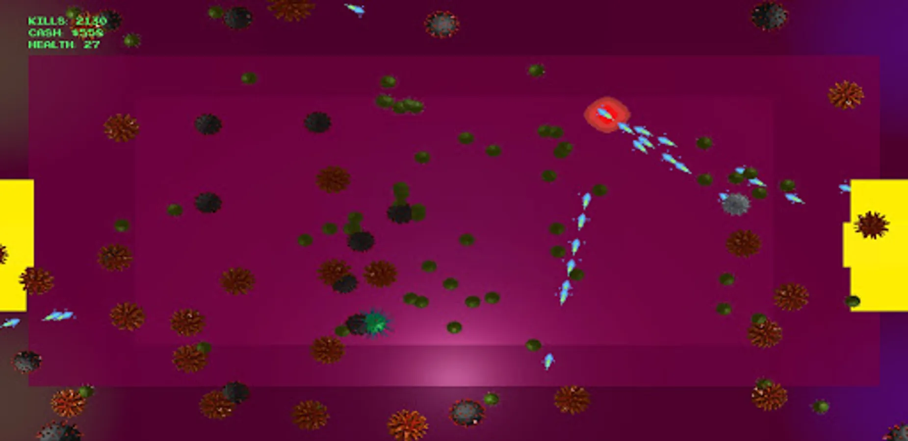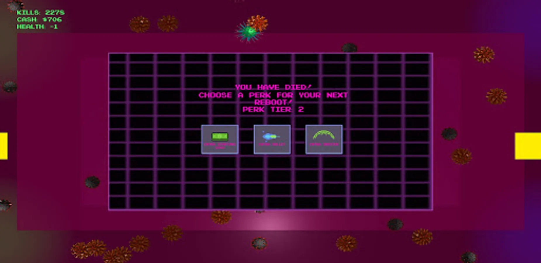 Dip and dodge your way past hordes of invading viruses. Upgrade yourself to take on ever increasing waves of enemies, all while listening to synthwave music.