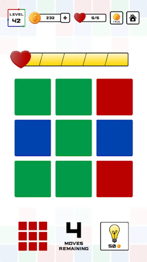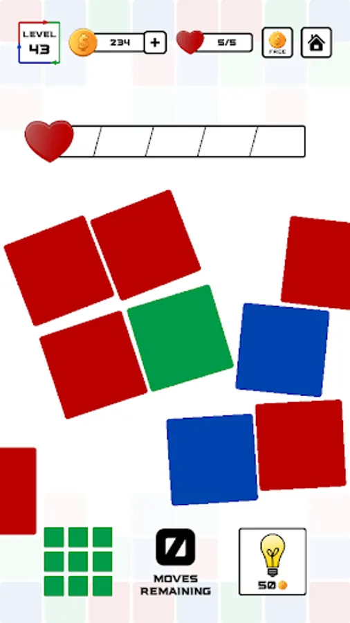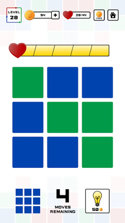 In Blockout, you're presented with a square grid of blocks -- 3x3, 4x4, or 5x5. Tap Blocks to flip to the next color and match your blocks to the required pattern on each level! Not so fast though, each time you flip a block all adjacent blocks get flipped too! Can you find the pattern on each level and create a Blockout?