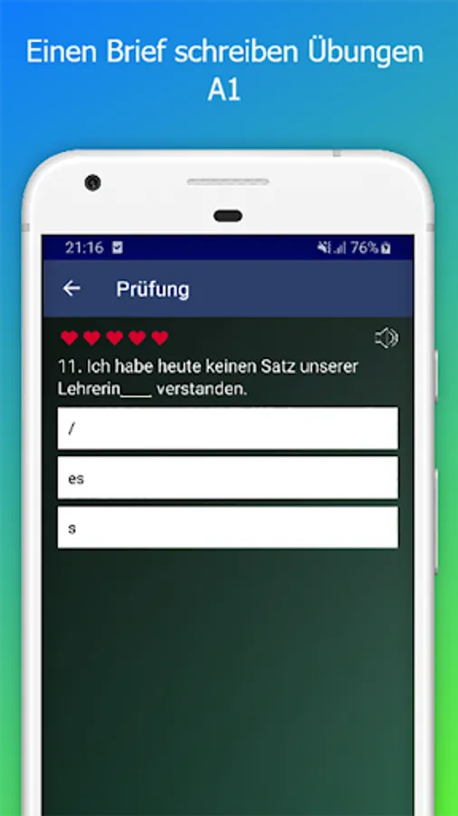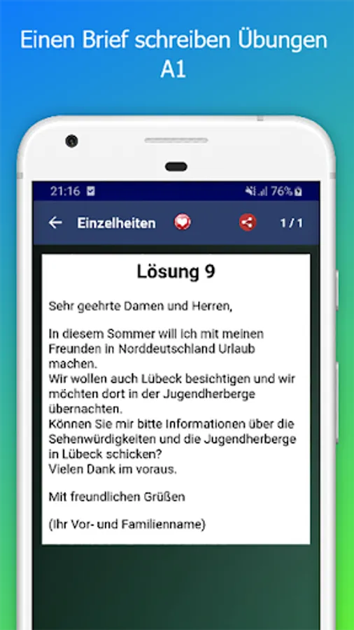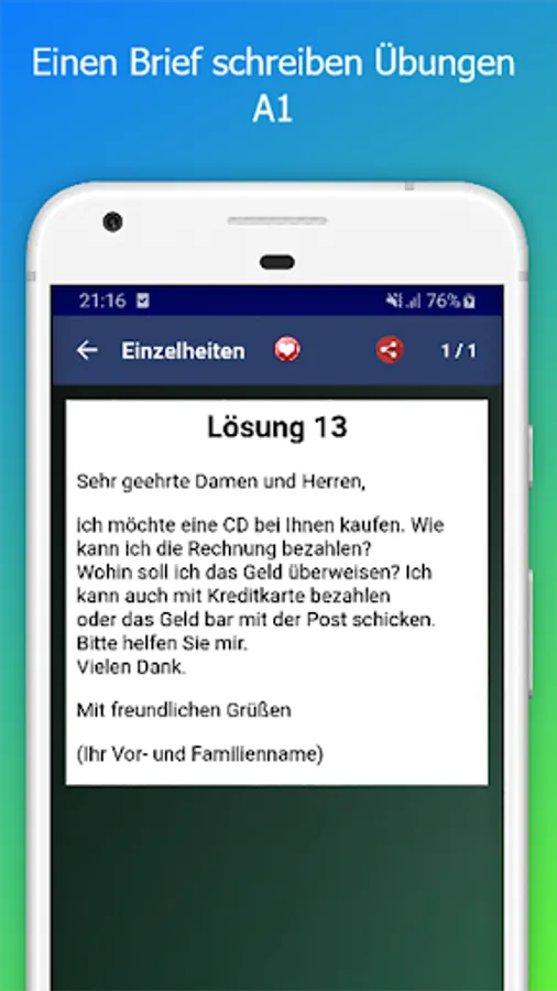 Exercises for German as a Foreign Language Level A1-A2-B1-B2 app write for exam Zertifikat Deutsch B1 Writing and Grammar