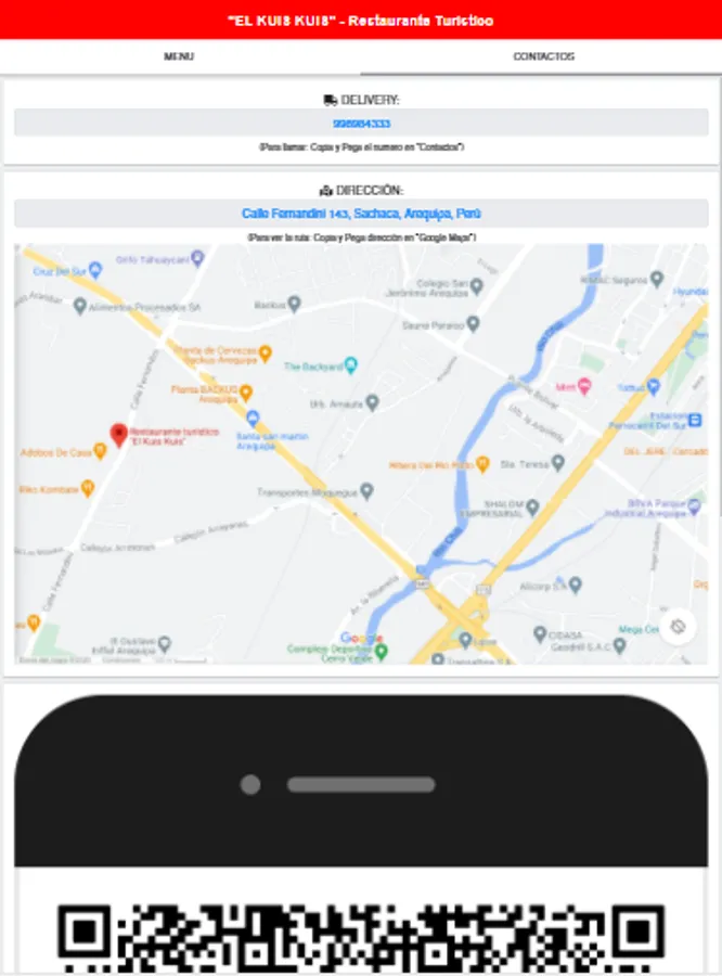At the bottom of the page there is a qr code (to scan qr code you must install the application "QR BARCODE SCANNER"), by scanning it, you can easily add our contact to your phone (vcard), call directly or search for the restaurant by geolocation in google maps.