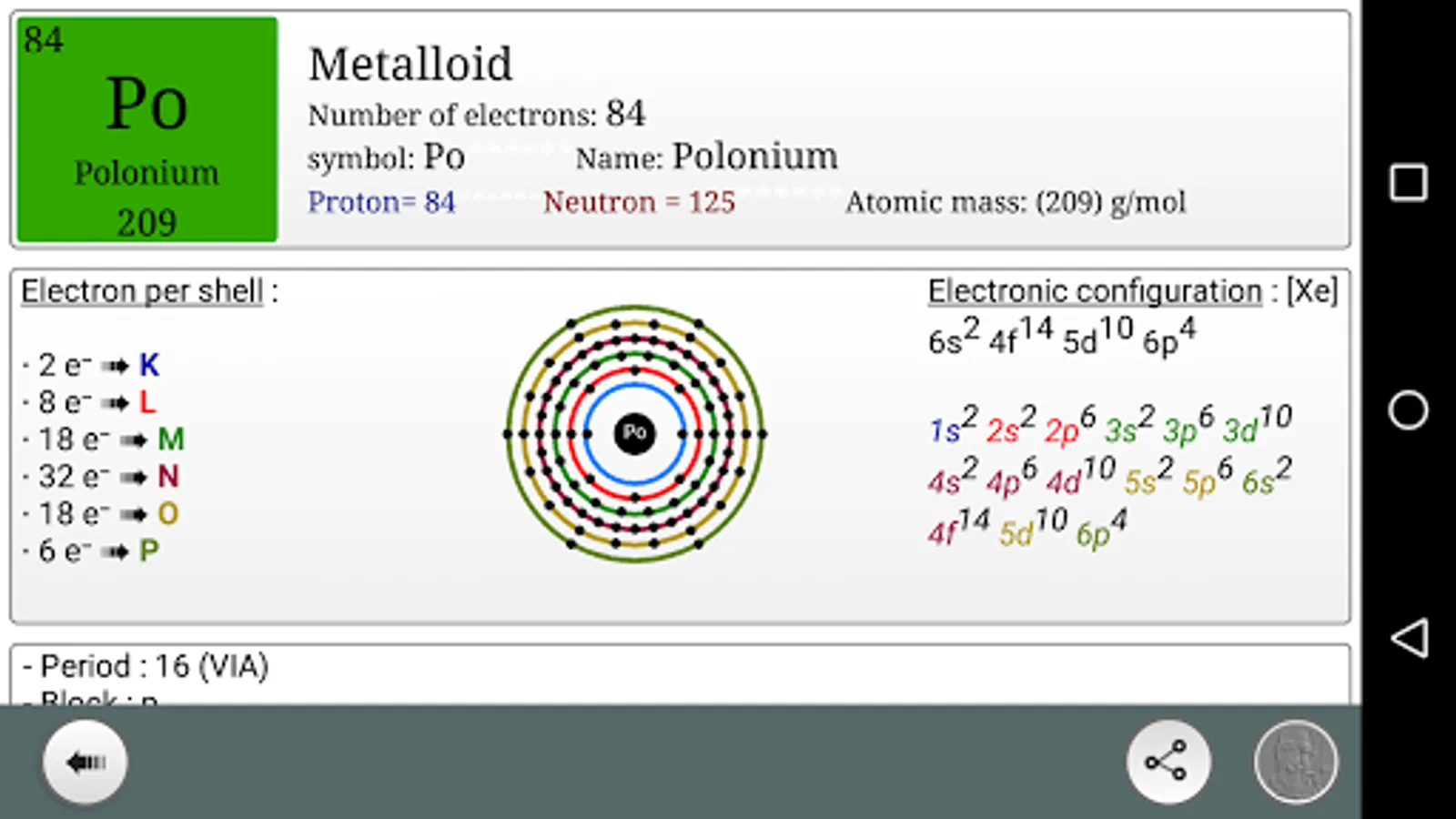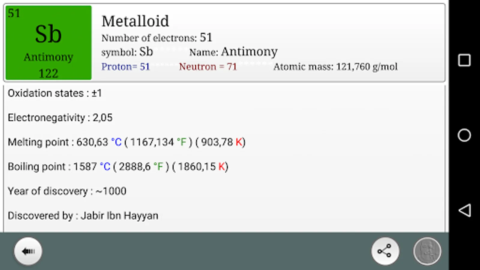 - Periodic table (Mendeleev table) Interactive that gives all important information about the atom.