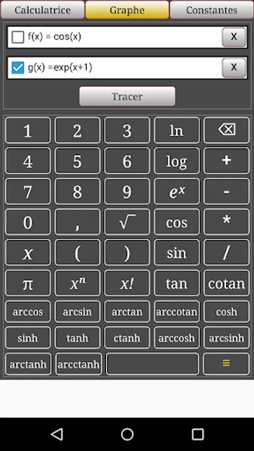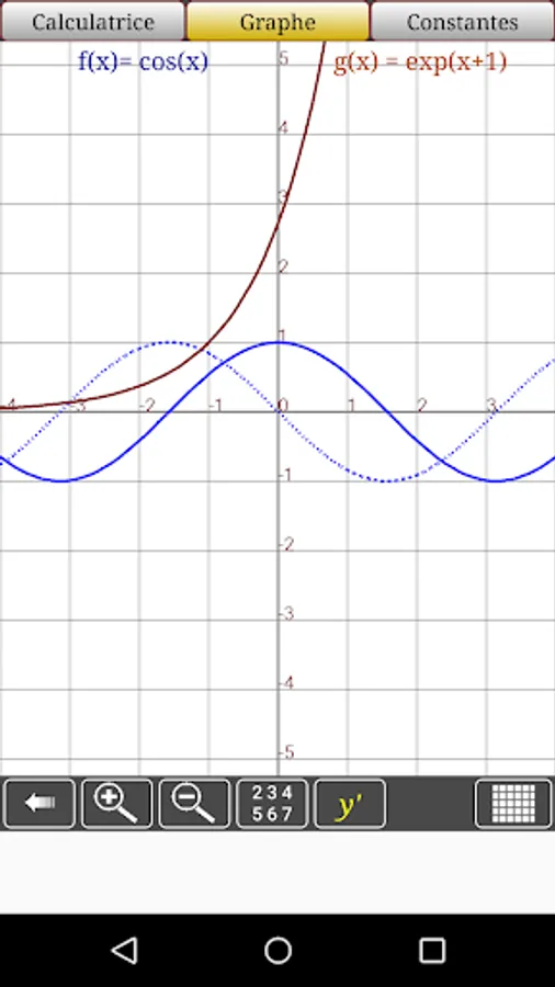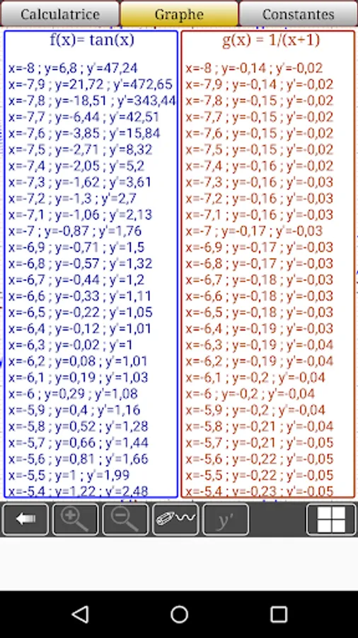 the application allows you to trace your mathematical equation (function) and its derivative, then display the values in steps of 0.1