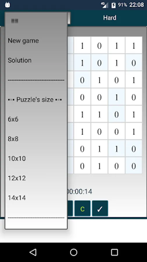 There are 5 grid sizes. (6x6, 8x8, 10x10, 12x12, 14x14)