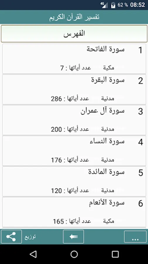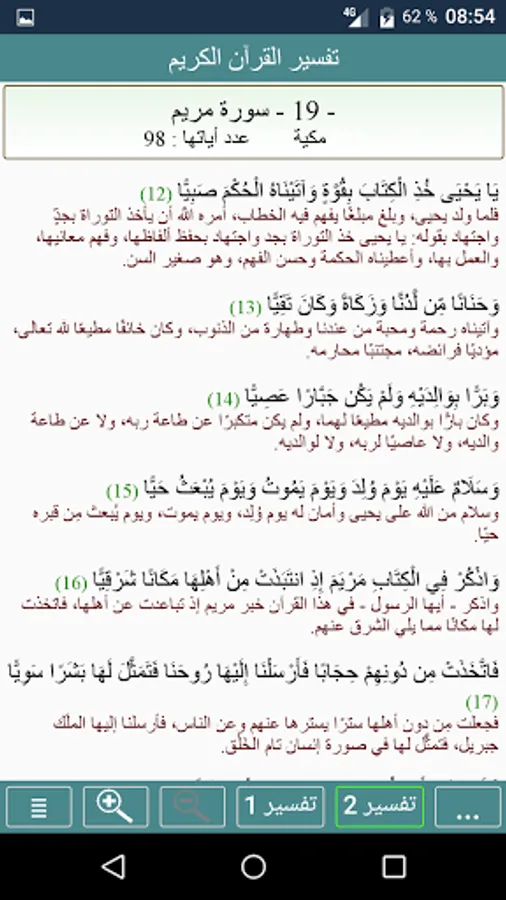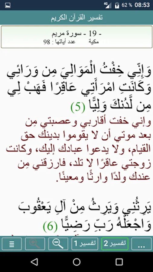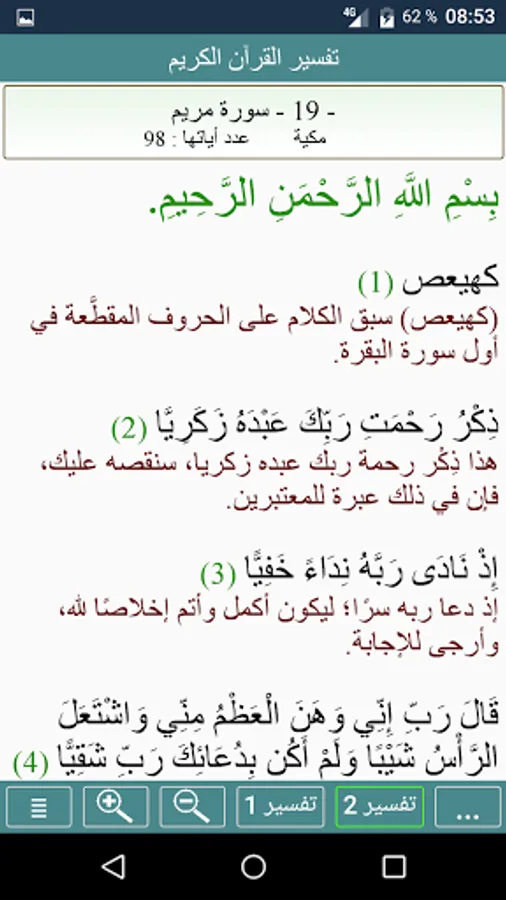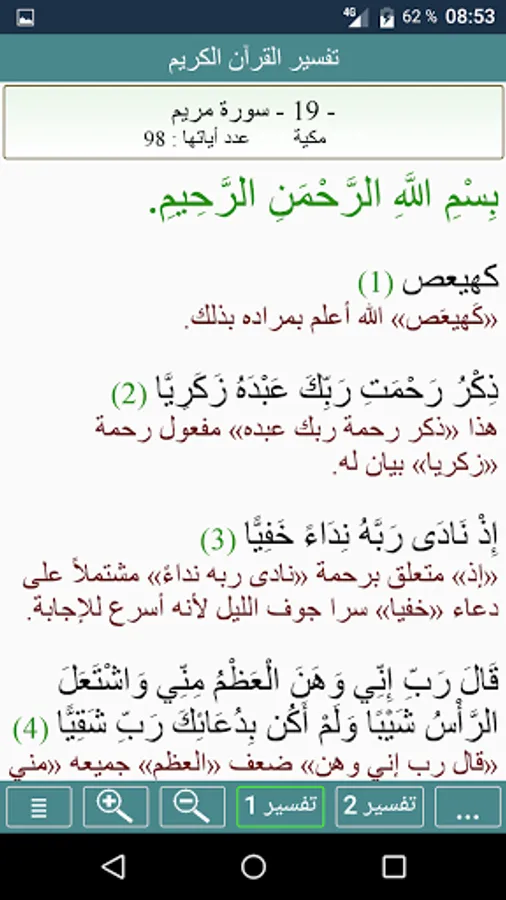 التطبيق يعمل على تفسير القرآن باٴکمله آية بآية