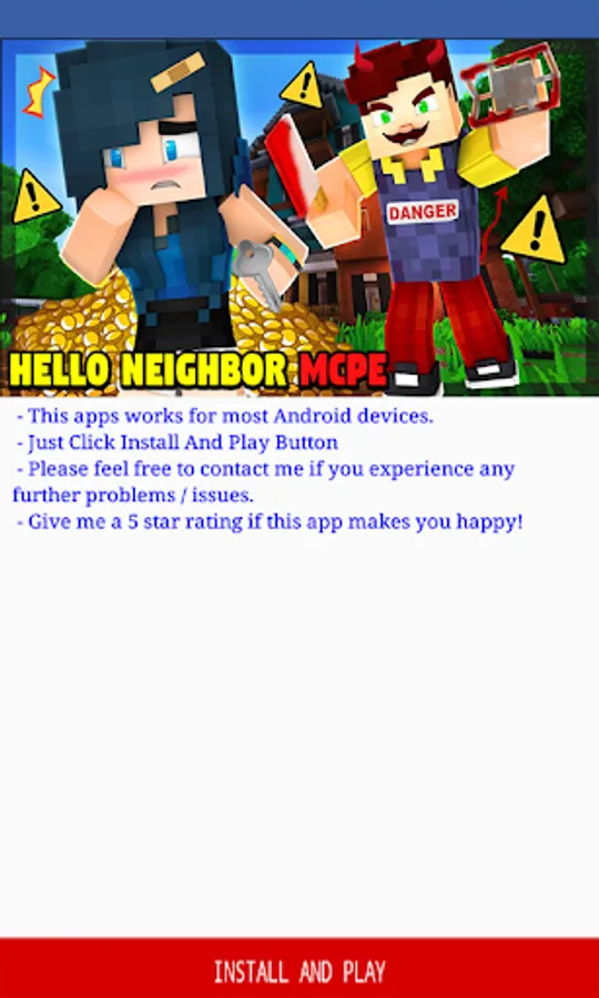 This is an unofficial app. Name, brand and assets are the property of the owner Mojang AB.This app just help you to get new experience in survival and exploration in the game.Your crafting and building gawe will be more fun with new mod,map,skin,addon and texture!If you feel there are trademark violations which don't fall under the "fair use" rules, please contact us by email.