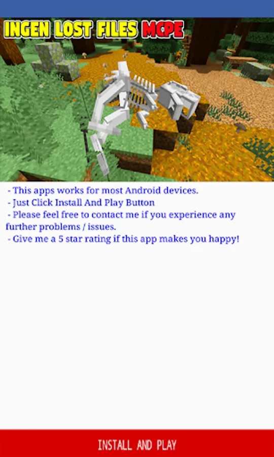 This is an unofficial app. Name, brand and assets are the property of the owner Mojang AB.This app just help you to get new experience in survival and exploration in the game.Your crafting and building gawe will be more fun with new mod,map,skin,addon and texture!If you feel there are trademark violations which don't fall under the "fair use" rules, please contact us by email.