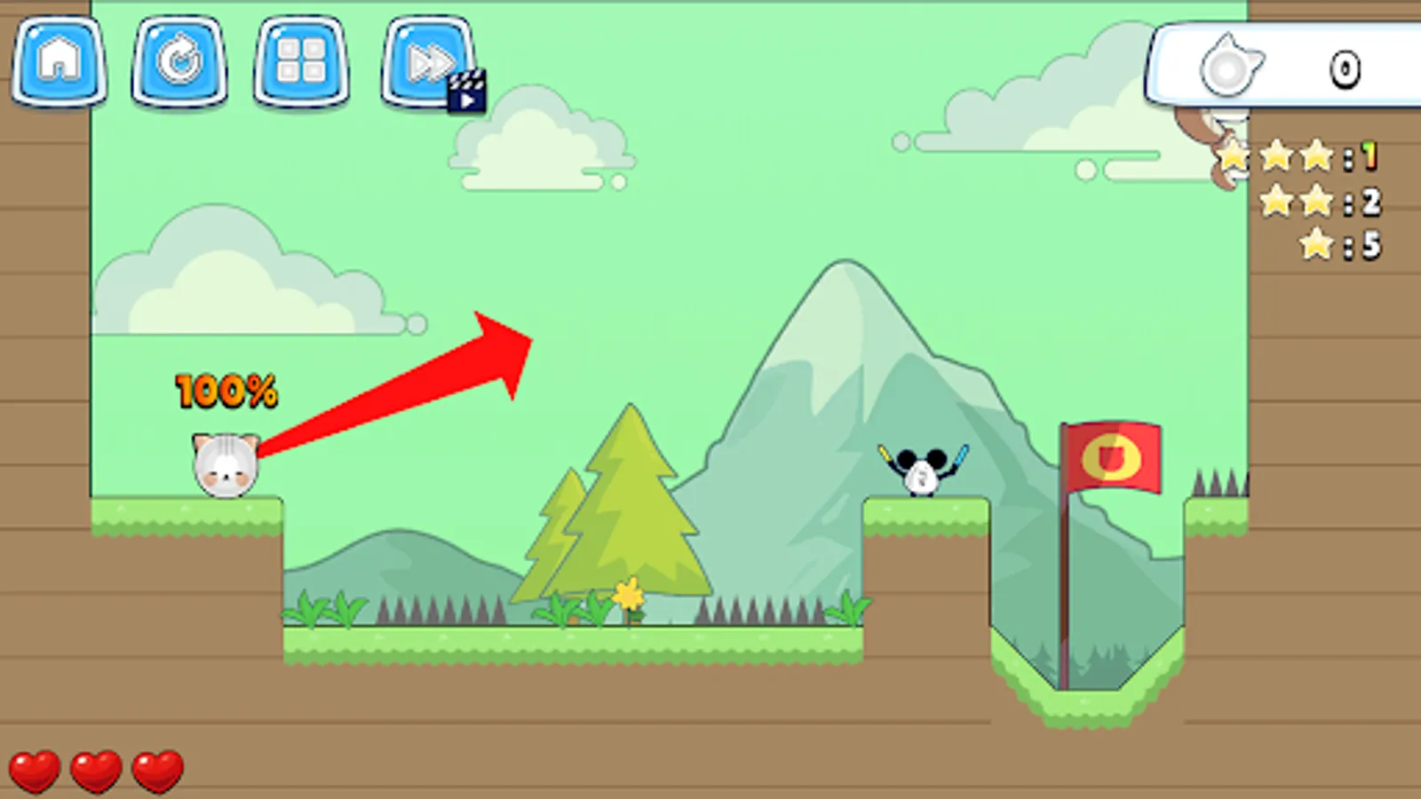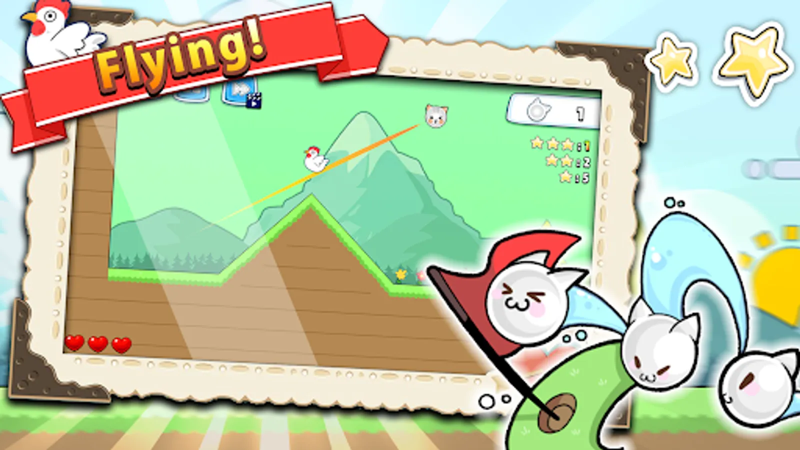 1.Swipe the screen to make the cat fly forward.