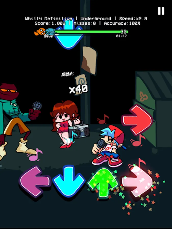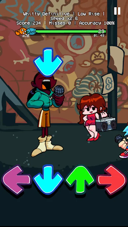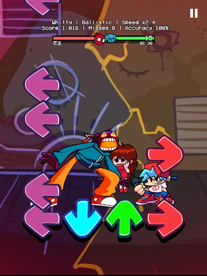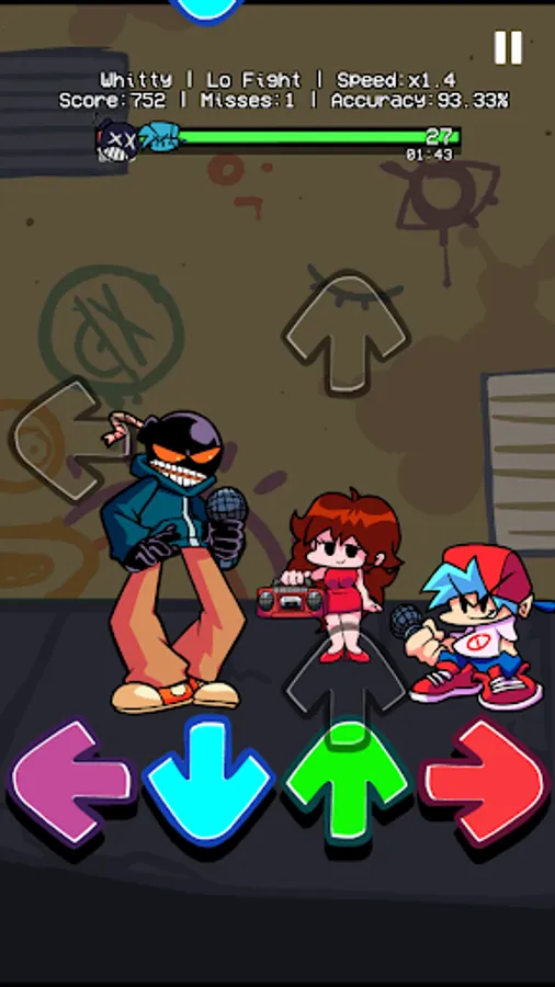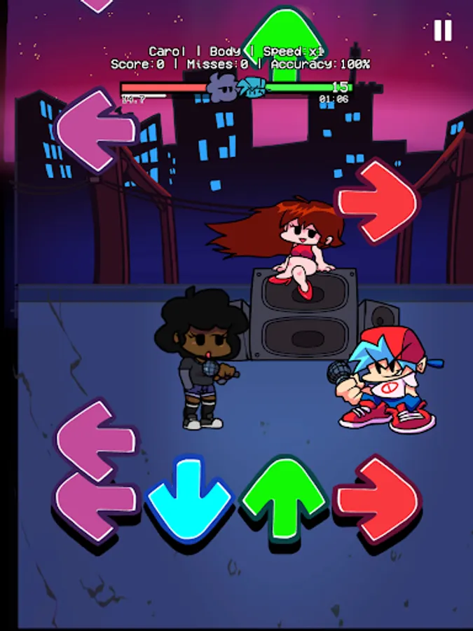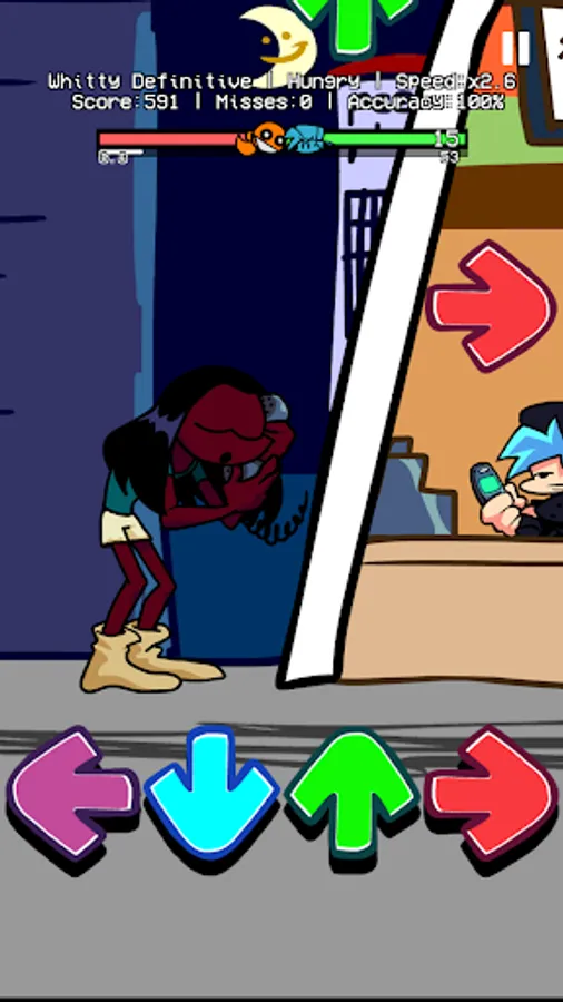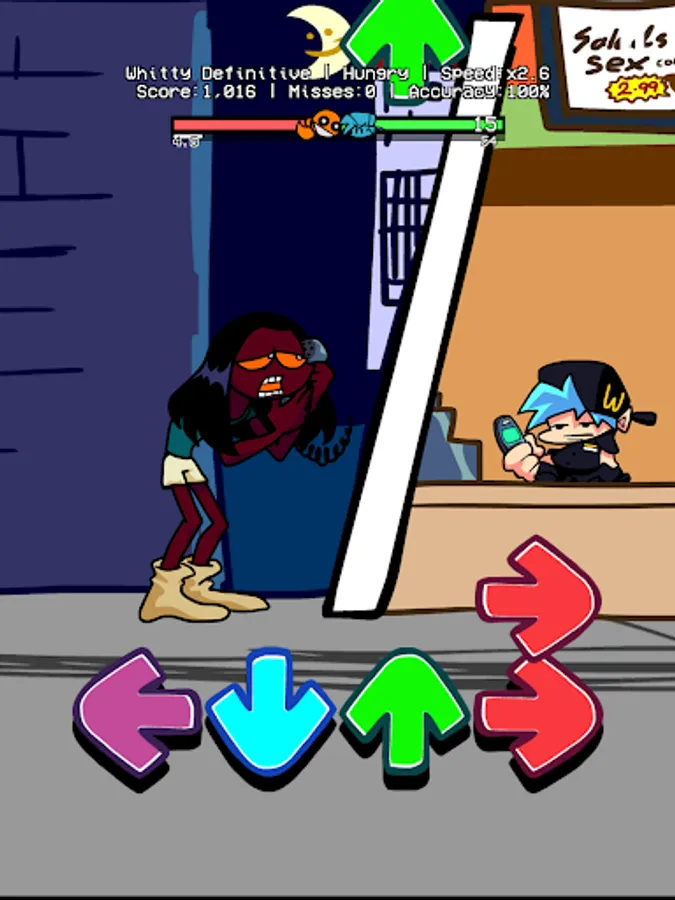 On Friday, You are hanging out with your girlfriend at night. Suddenly, you meet a weird guy with a funkin bomb head in a small alley. Ugh? Wait! Is that Whitty? Why don't you invite him to rap battle right there? You better should beat Whitty, and other FNF enemies like Miku, Garcello, Tricky,... Then, you can take your girlfriend's heart.