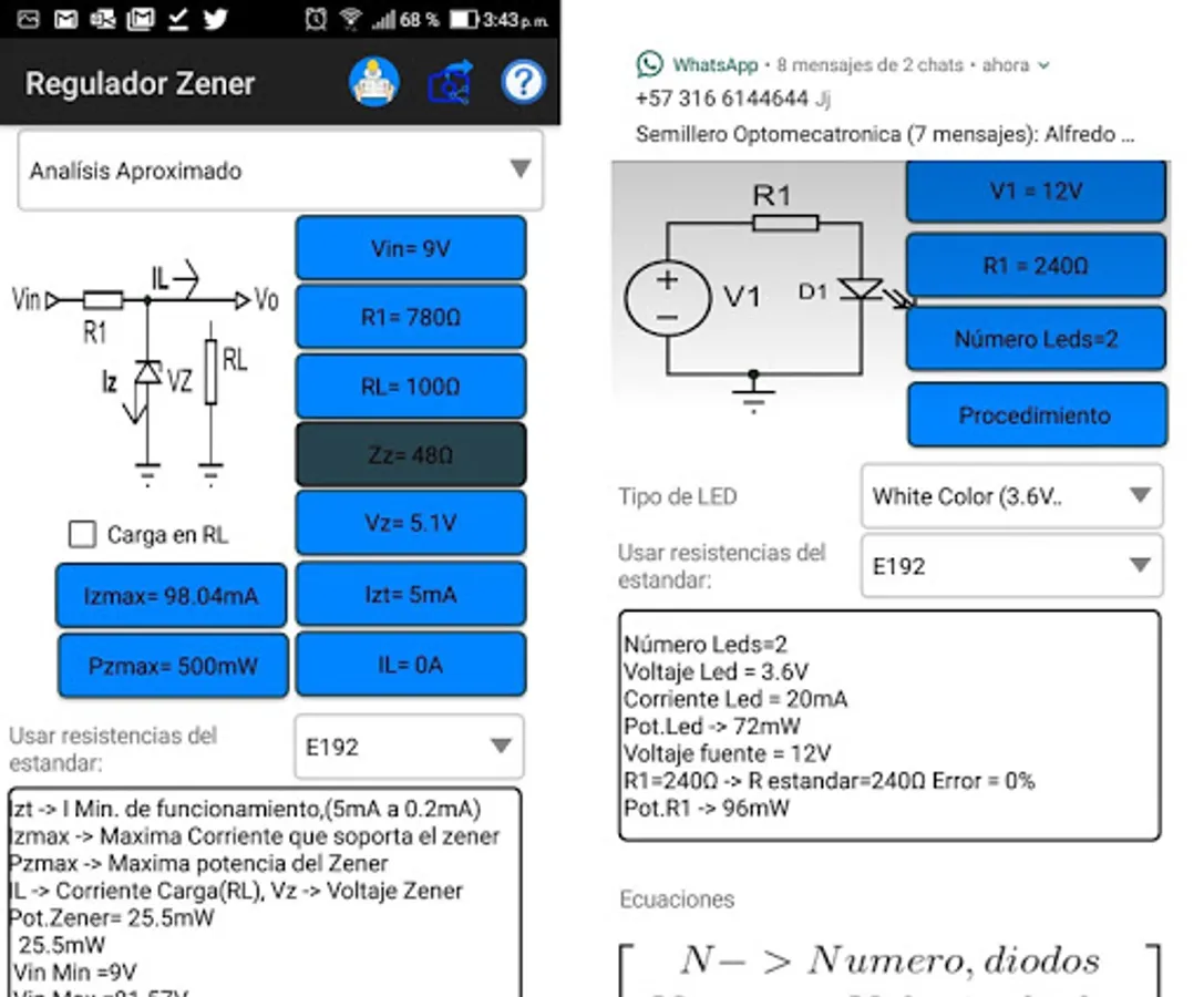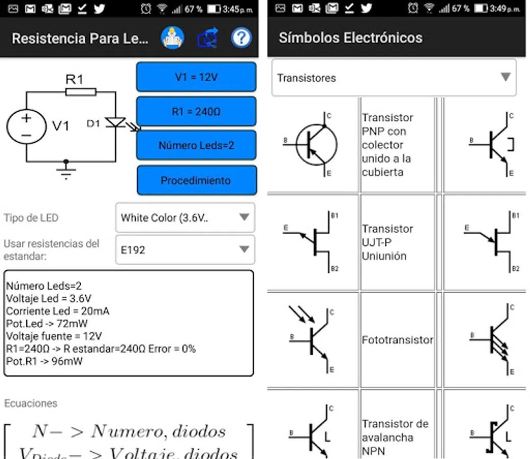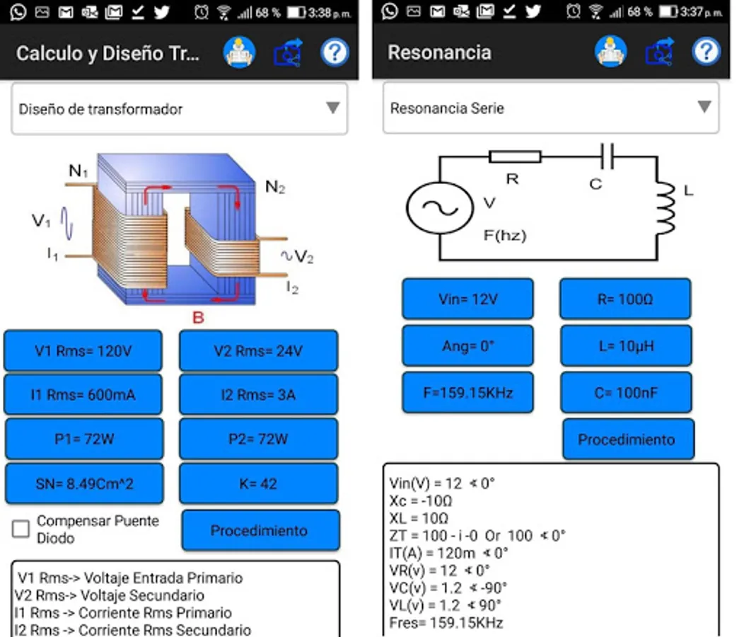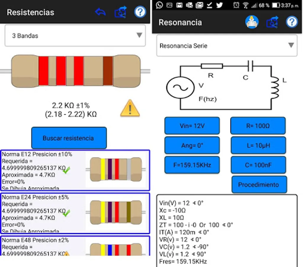 Calculator for electronic engineering and electronics lovers. With their respective calculation equations.