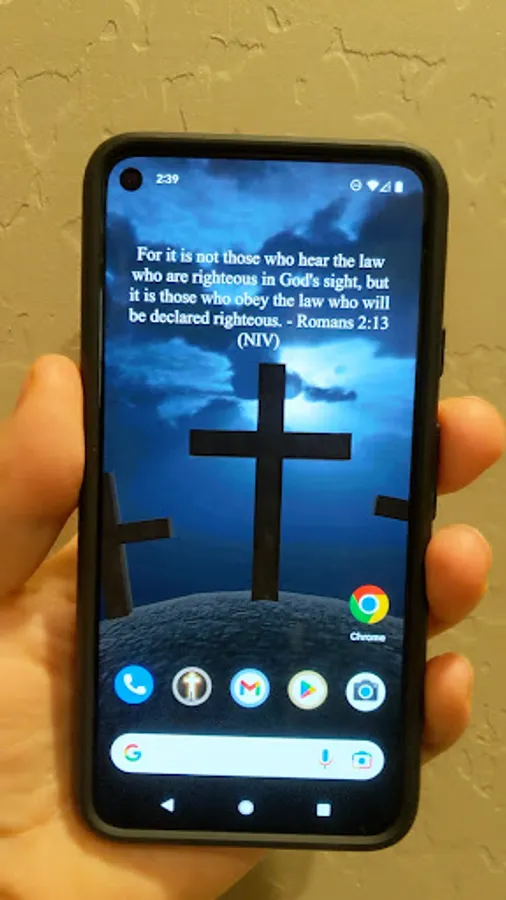 • Calvary Night - This Jesus wallpaper shows the three crosses on the hill of Calvary at night. It changes perspective and displays a bible verse that changes daily.