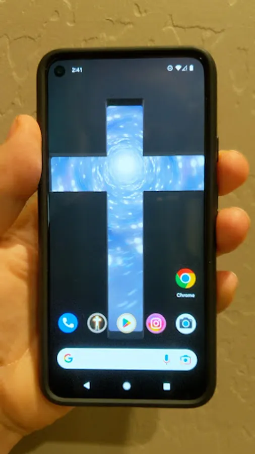 • Cosmic Cross - This cross wallpaper shows a crucifix shaped window through which you see a cosmic tunnel. It changes perspective with the phones movement.