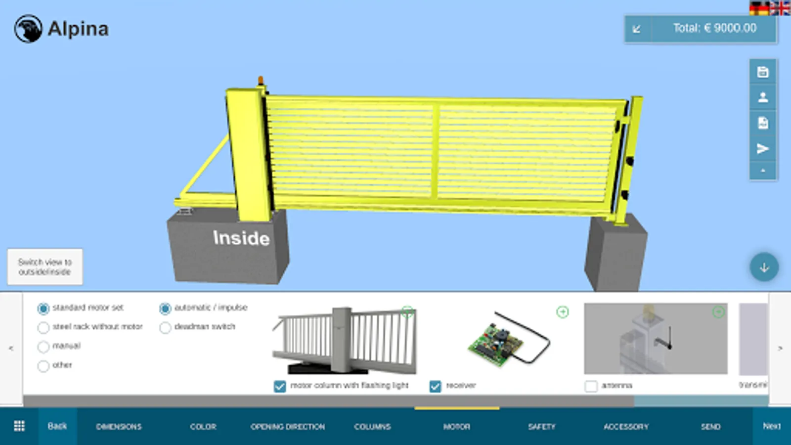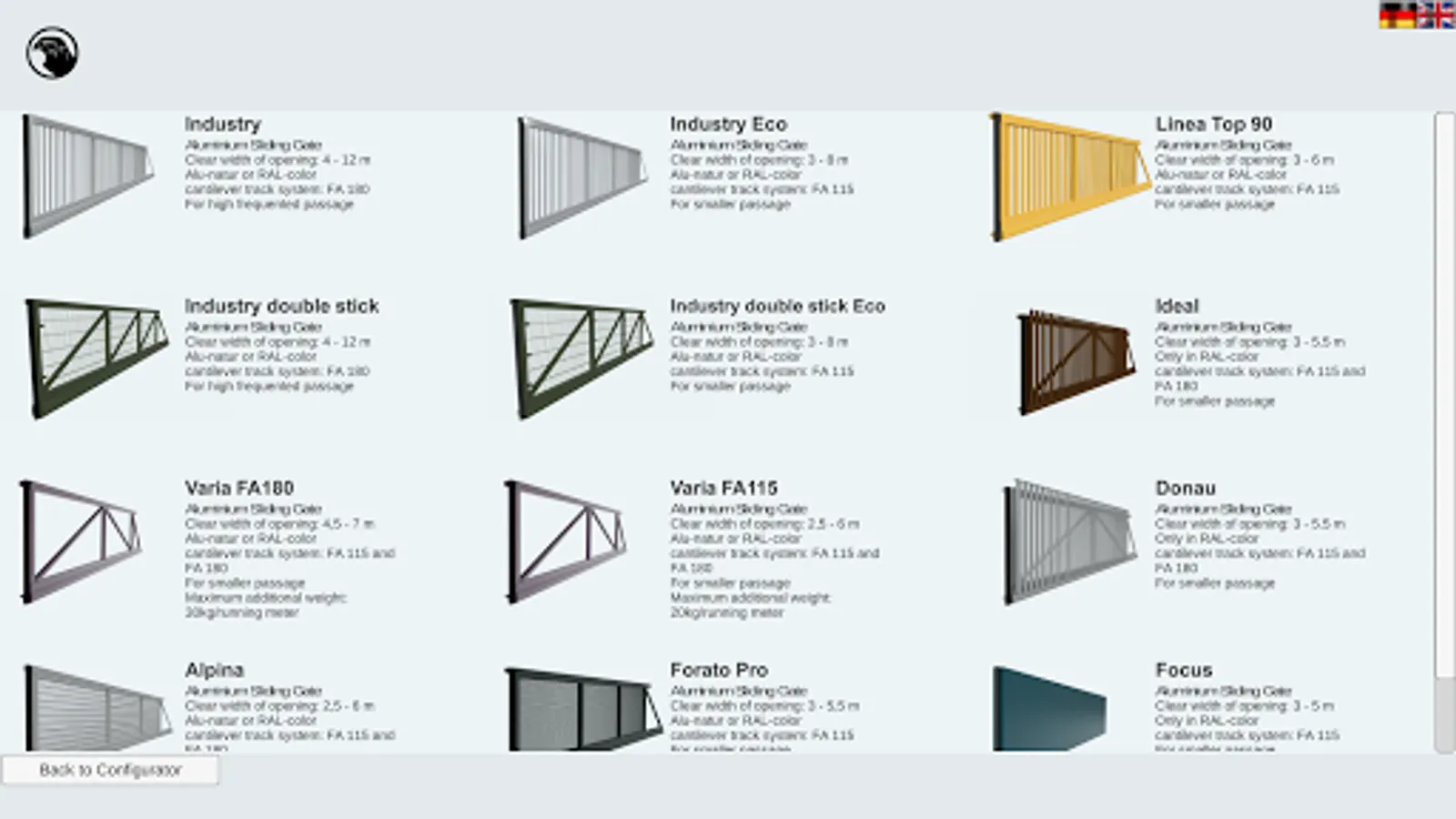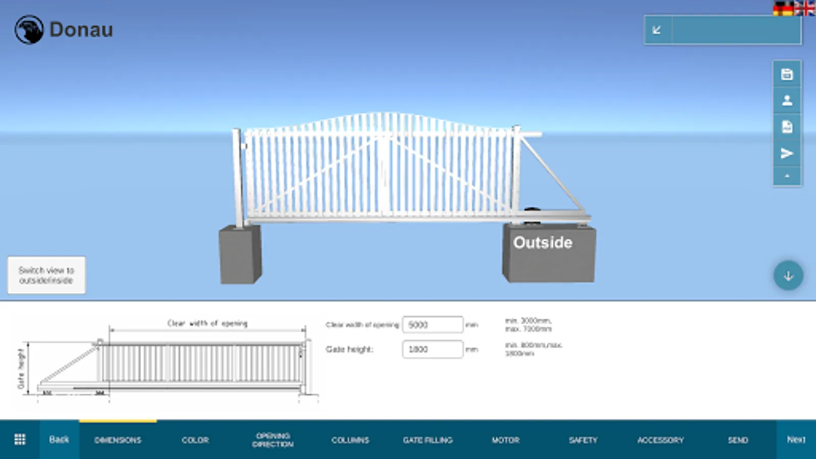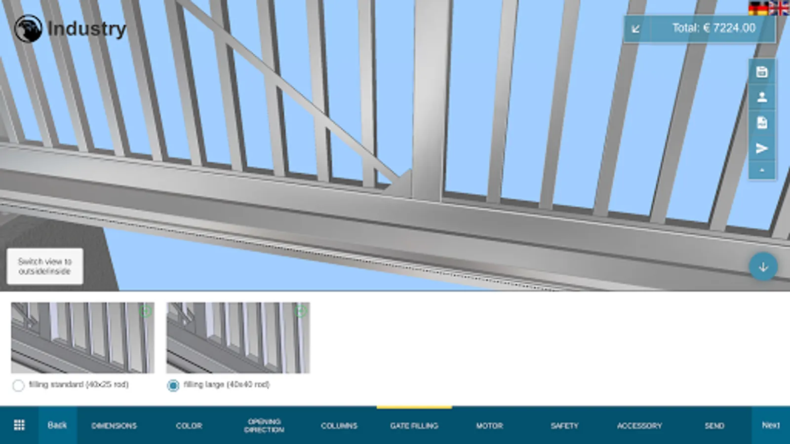 The Falken gate configurator visualizes your gate in 3D, and you can send us your configuration directly as request.