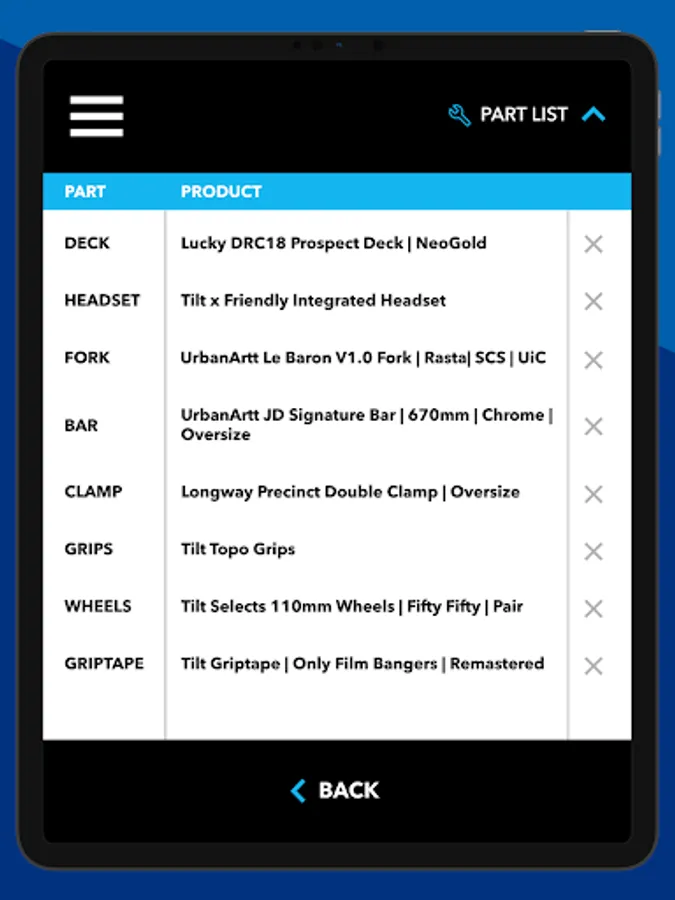 -Check out product weights and specs with the touch of a button to help choose the right setup for your style!-See every detail of your favourite parts with full 360 degree rotation and zoom features showing you every angle of the high-quality, detailed 3D models.