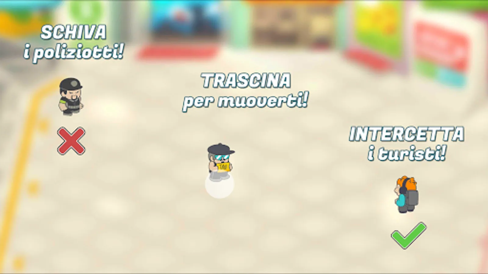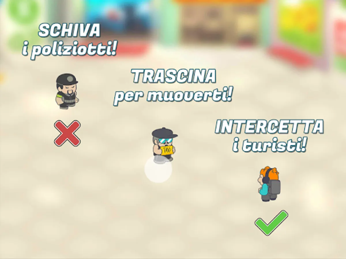 Hence the concept of the game: You are an abusive taxi driver and you have to intercept as many tourists * as possible; but be careful not to get caught by the cops!