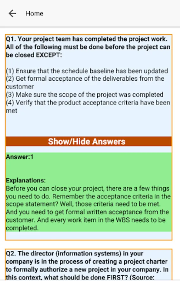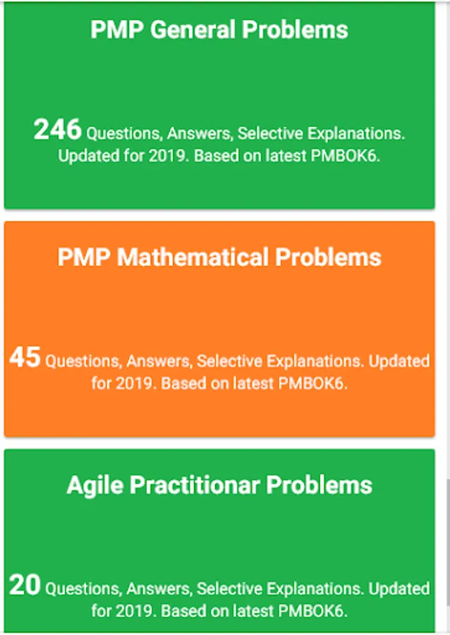 This is completely updated for the newest PMP exam and the App provides most comprehensive review questions. You'll benefit from the Multiple Choice Questions on a wide range of PMP topics, concepts for best practice for your PMP Exam.