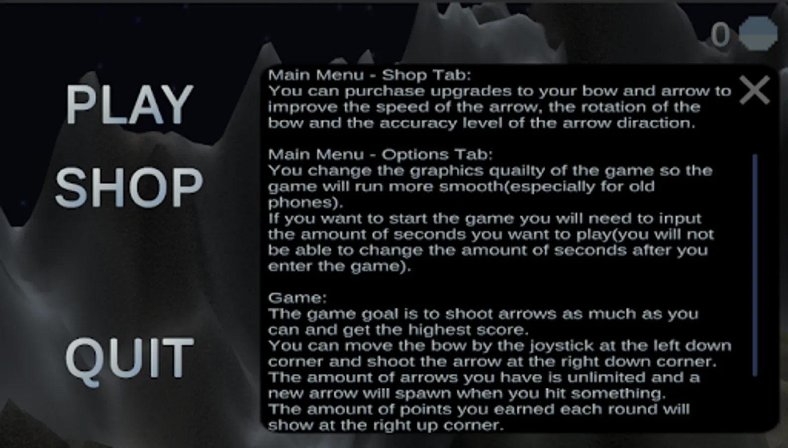 The game goal is to shoot arrows as much as you can and get the highest score,