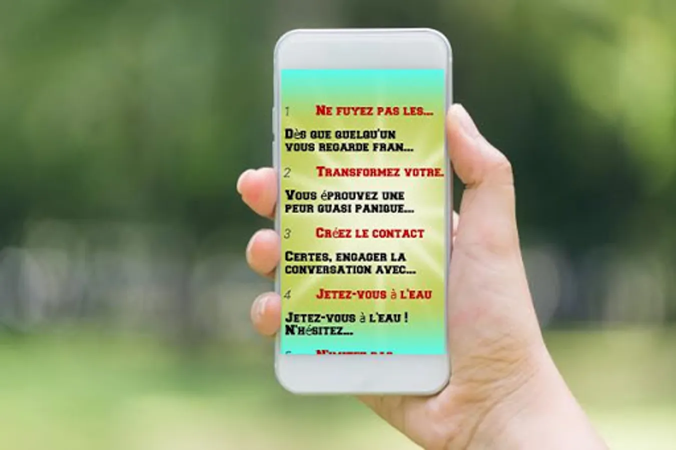 Because self-confidence is not innate, this app gives you some simple and practical tips to succeed in confronting others and succeeding in what you are doing!