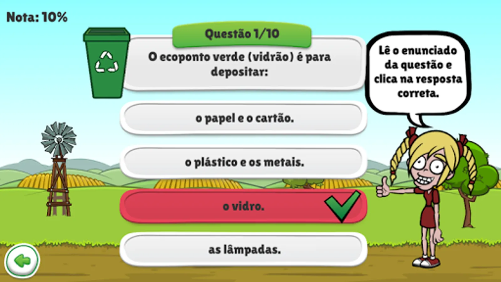 This educational game aims to teach children to recycle. If they do not know the term recycle, then there is a small theoretical lesson in the application itself. Then the children will be able to test their knowledge in five different games.