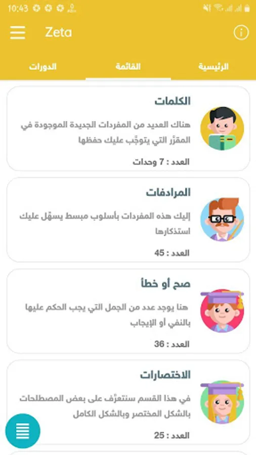 Zeta team offers you an application for the students of the Faculty of Informatics Engineering for the second year to provide comprehensive coverage of the course 4, in addition to the 8 courses and the comprehensive summary which contains