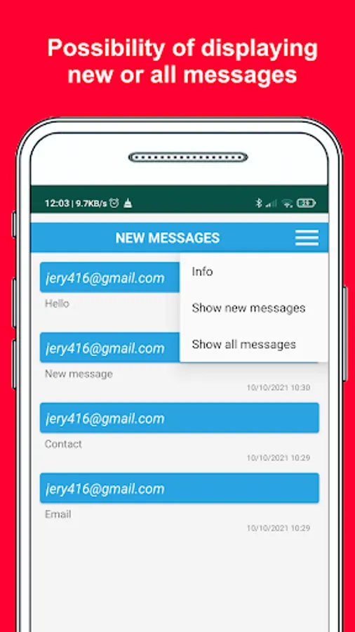 The advantage of the app is that there is no hidden notification of delivery or read messages (spam) normally automatically sent to senders. This makes your email address "useless" to the sender of spam over time and stops receiving unwanted messages (SPAM).