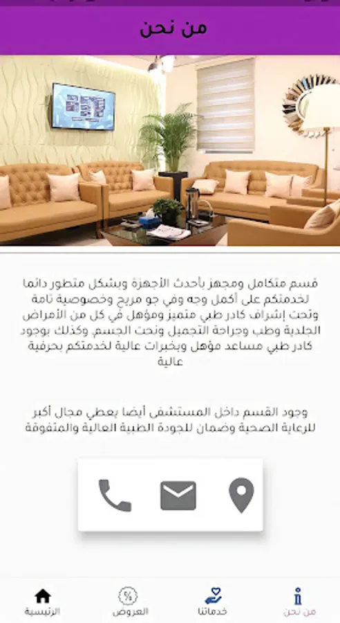 قسم متكامل ومجهز بأحدث الاجهزة وبشكل متطور دائما لخدمتكم على اكمل وجه في جو مريح وخصوصية تامة وتحت اشراف كادر طبي مؤهل في كل من الامراض الجلدية وطب وجراحة التجميل ونحت الجسم وكذلك بوجود ممرضات مؤهلات وفنيات العناية با البشرة وبخبرات تؤهلهم لخدمة كافة زوار القسم على اكمل وجه وبحرفية عالية.