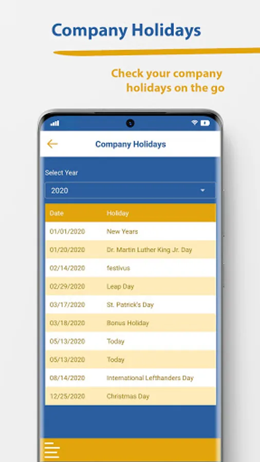 Employees can easily look up the company holiday schedule from the app, saving them from having to hunt down a company calendar or flip through their employee handbook.