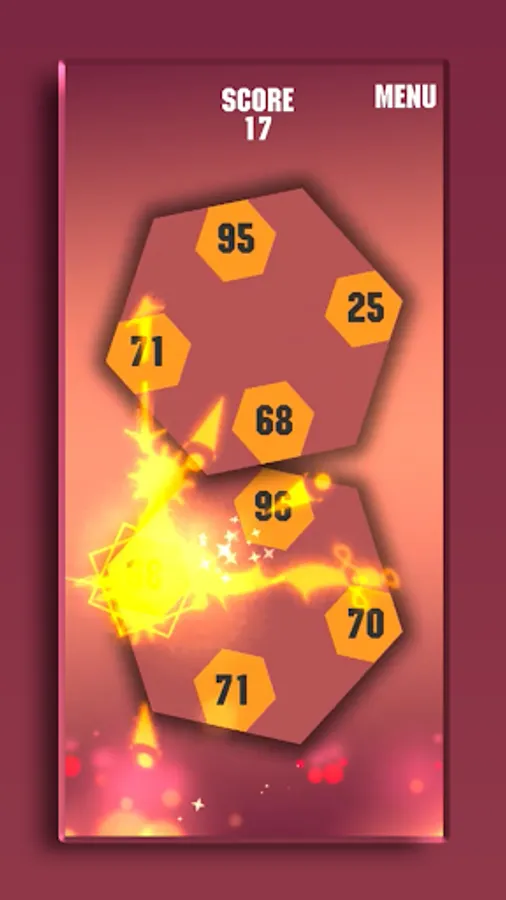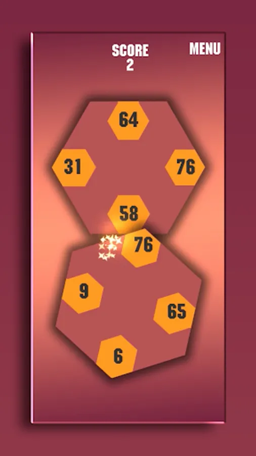 Two platforms containing 4 digits each, and only one identical both from above and from below. Your task is to push them together, manipulating the lower hexagon. There is only one attempt, success or failure depends only on your attention.