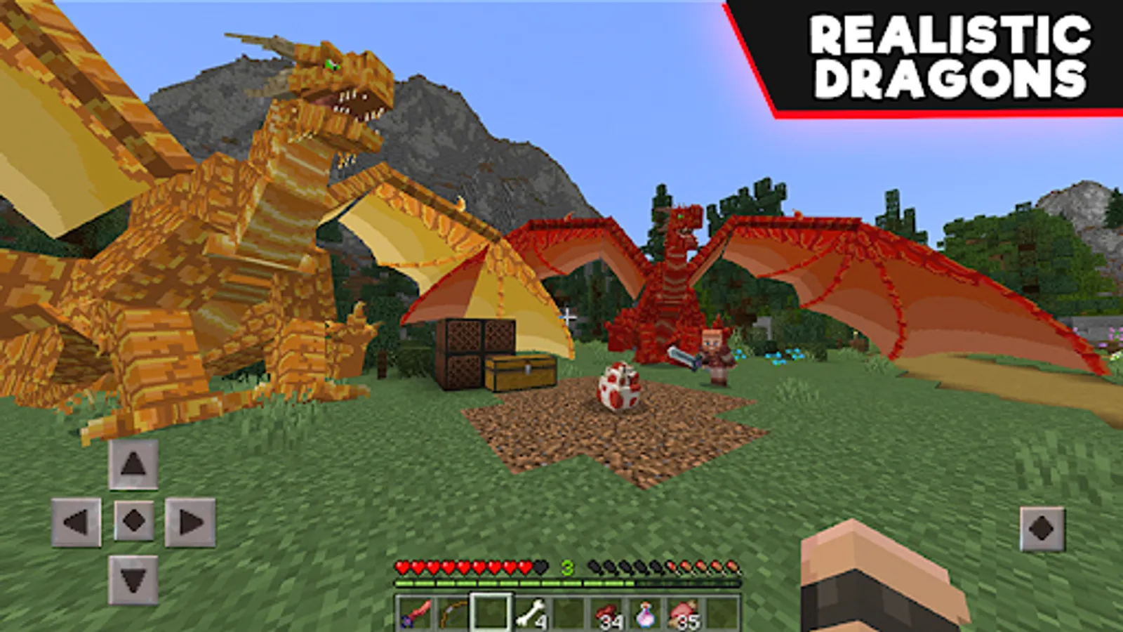 Dragon mod for Minecraft Pocket Edition adds spawn eggs to the world of pixels and craft. It gives you a feeling you live in a fairy tale with real dragon.