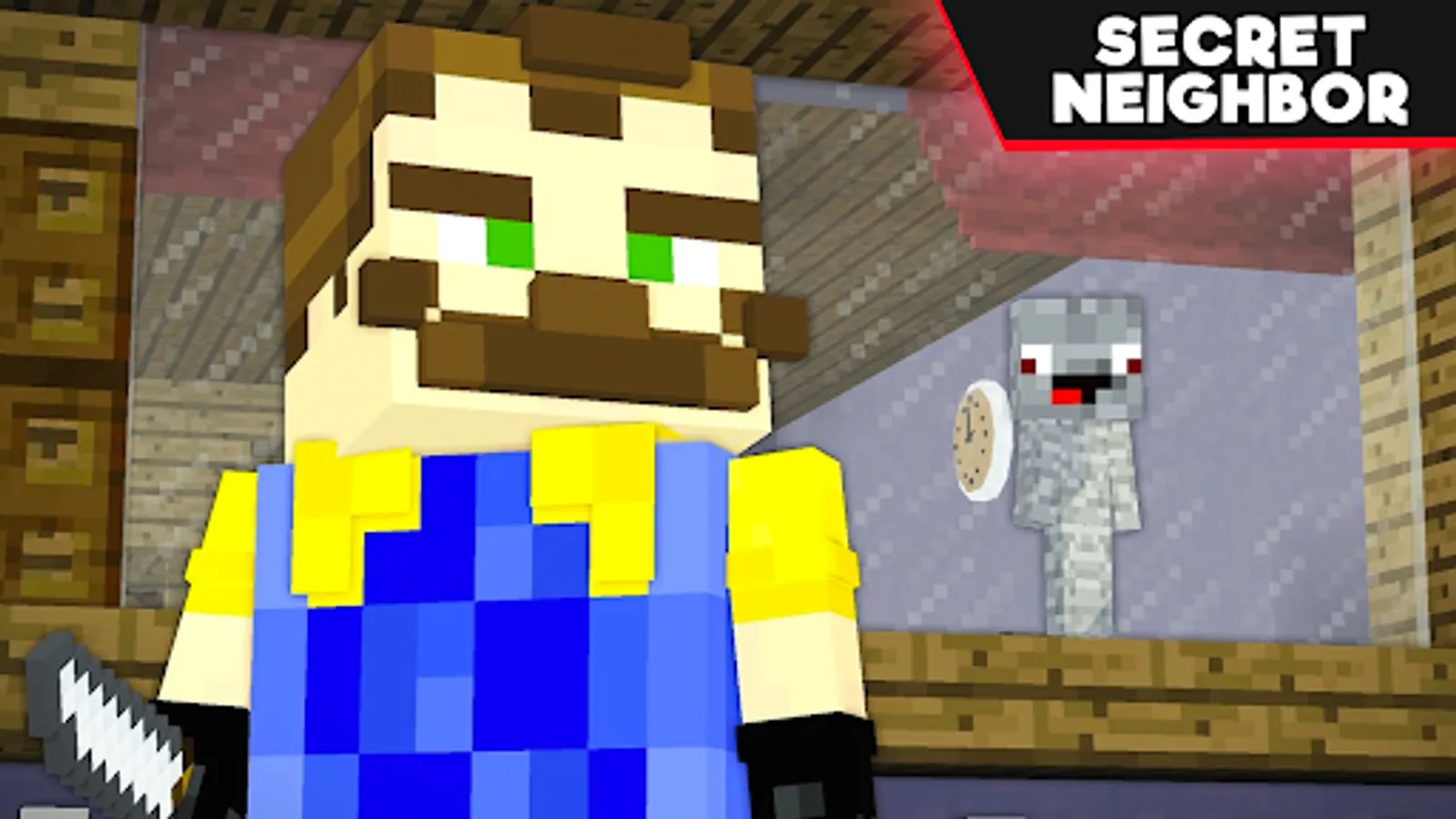 Neighbor Mod for Minecraft Pocket Edition is made to add horror to free game multiplayer where a group of intruders must save their friend trapped in the Neighbors eerie basement, but the twist is that one of the intruders is secretly in disguise.