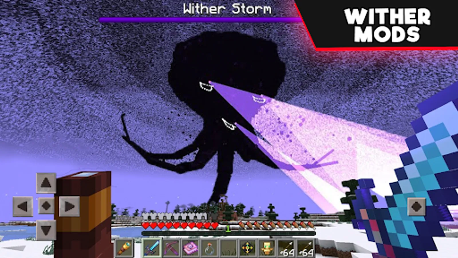 Wither Mod for Minecraft Pocket Edition adds storm and boss to the world to craft, fight and survive on the map. You can defeat your enemies and experience hardcore!