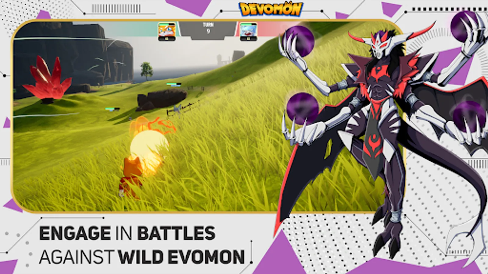 Epic Battle Sequences: Engage in exhilarating 1vs1 combat against wandering Evomons. Show your tactical abilities by triumphing over the island's native fauna.