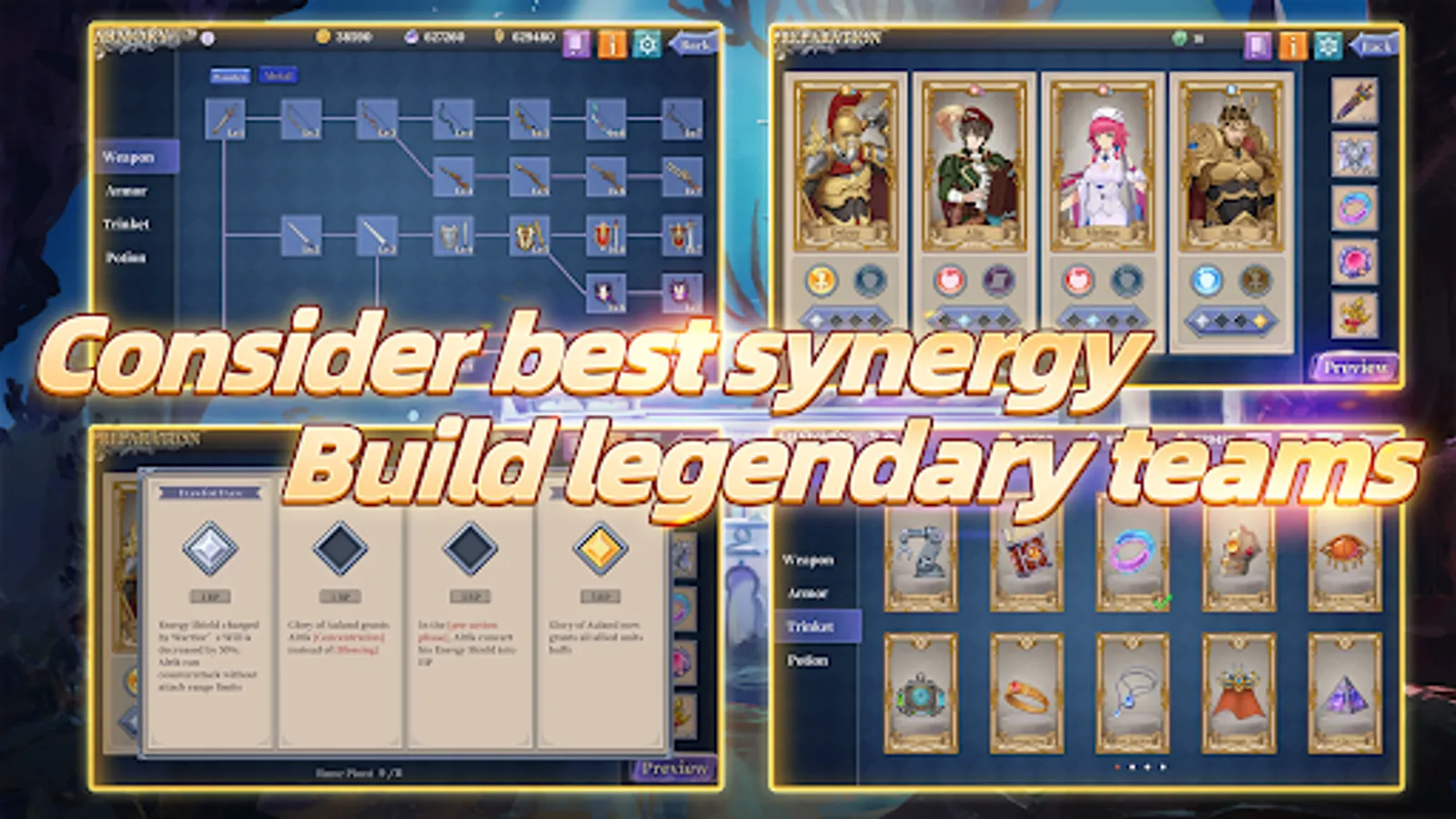 There are more than 40 heroes with unique skills. Each hero has unique game play and mechanism. There are more than 10 million combinations of equipment and teams. Define victory in your own way!
