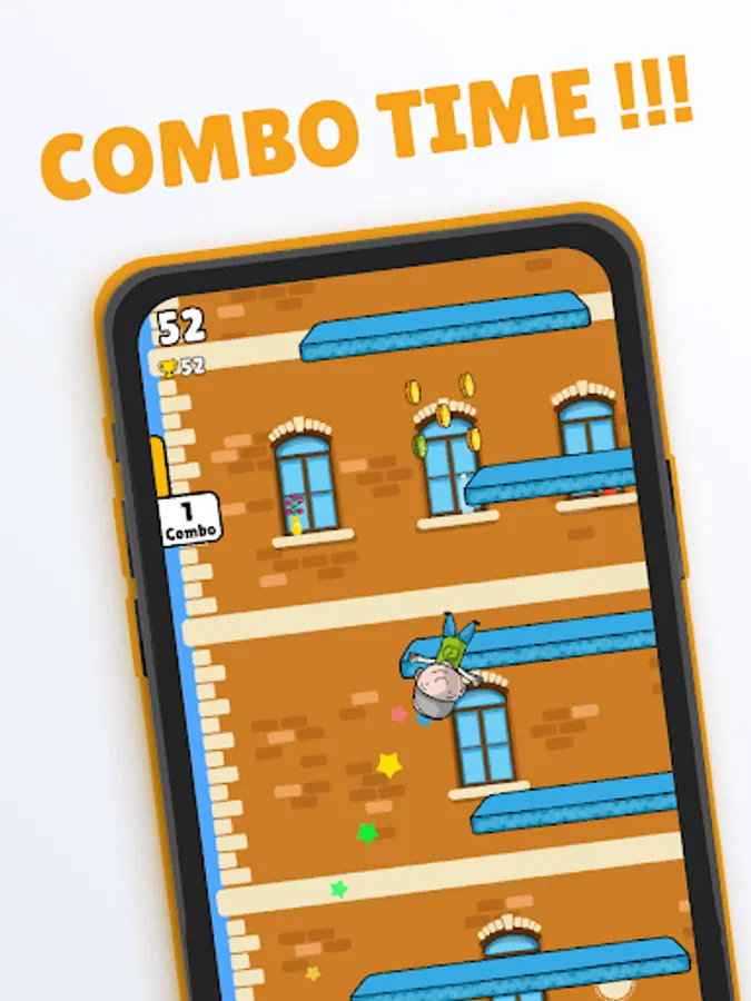 Combo time! Start Jumping and try to unlock all characters and make sure that your power-ups are ready and levelled up to help you reach the highest score. You will find new upgrades while you play.