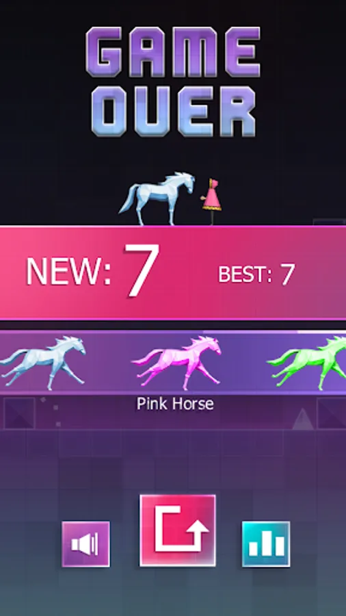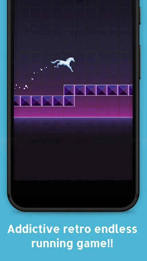 This adrenaline-fuelled, endless runner arcade game is the ultimate test of your reactions. Race your horse through a retro synthscape while dodging deadly spikes and blocks approaching at breakneck speed.
