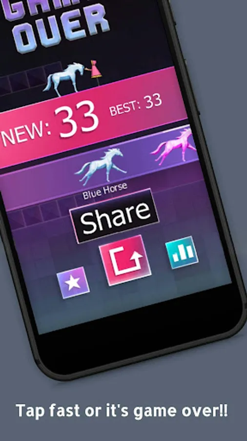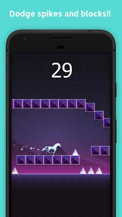 Race your horse through a deadly synthscape of spikes and blocks. Tap quickly or it's game over!