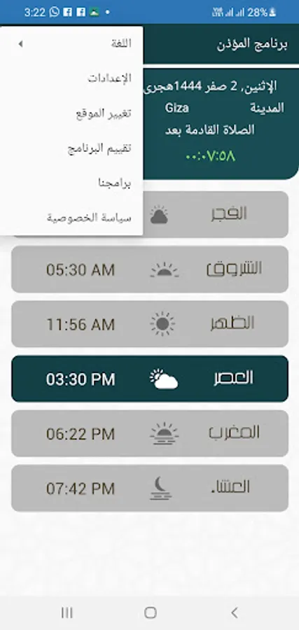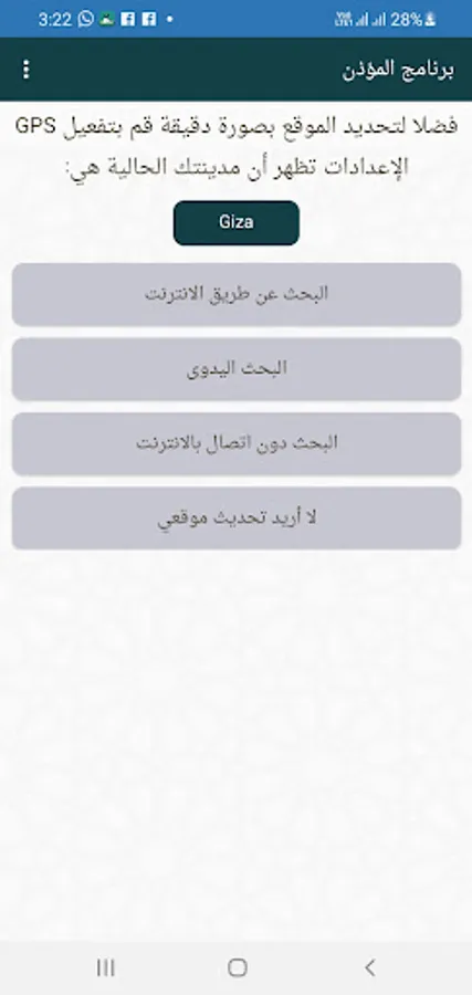 How to use the program: First answer the identification of your current city either through manual research or search through the Internet, for example, choose from hand research Egypt and the city of Giza to determine the dates of prayer correctly and do not forget to change the default city is Mecca so as not to calculate the timing In the wrong way if you do not stay in Mecca
