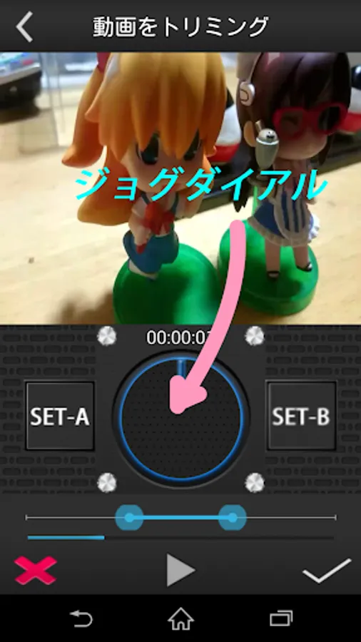 Easy edit the timeline drag-and-drop. Coupling the video, reverse playback, the time lapse, resize, rotate, and crop freely. Editing position is also can be fine-tuned in the jog dial. You can share in the "Select a video" is also from such as LINE.