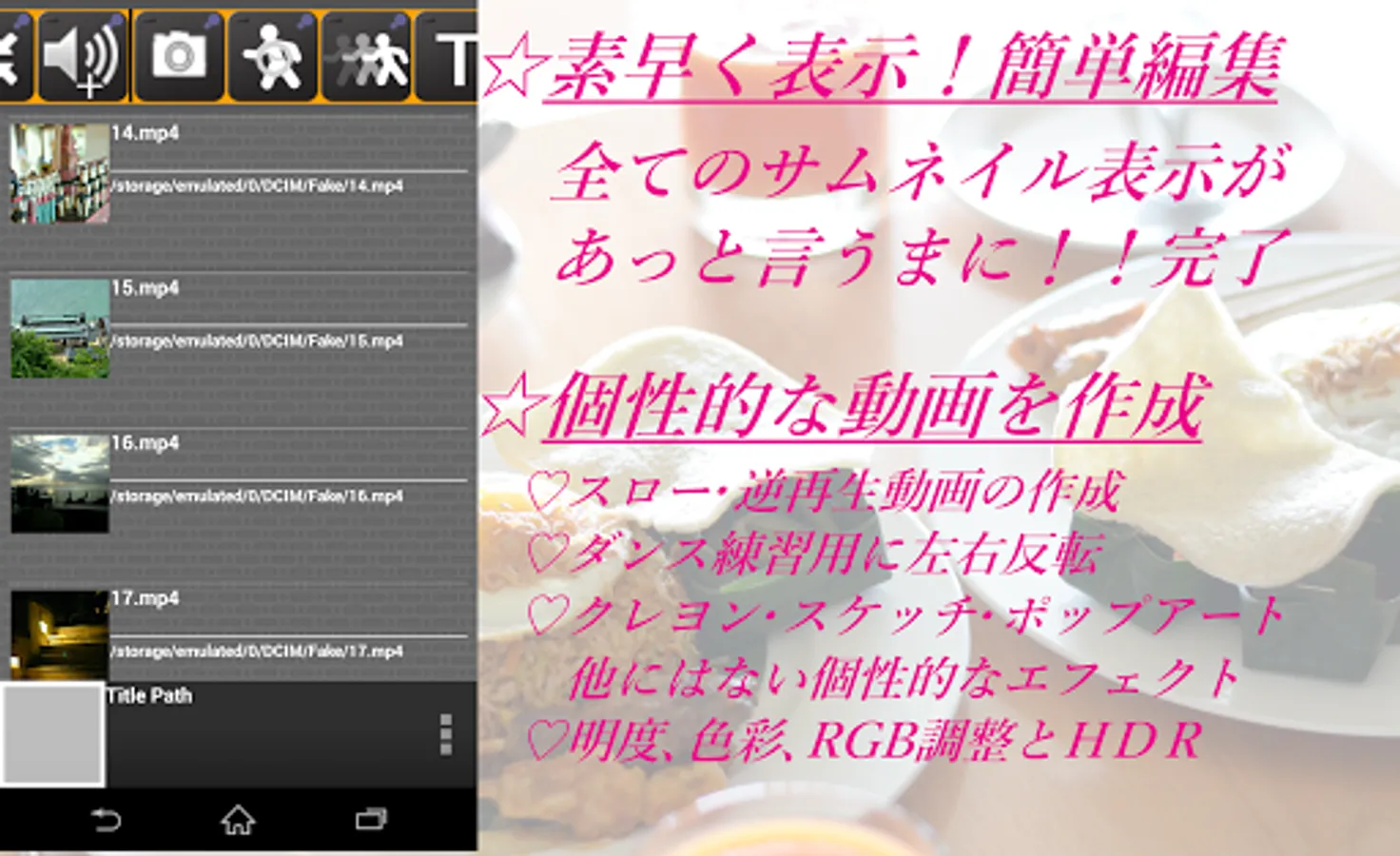 • In Android4.4 or more is limited external SD destination. Because of this editing video will be stored in the internal SD.