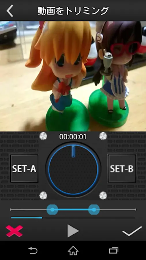 Easy editing the timeline by dragging and dropping. Resize, rotate, crop any way you want. Editing position is also possible to fine-tune the jog dial.