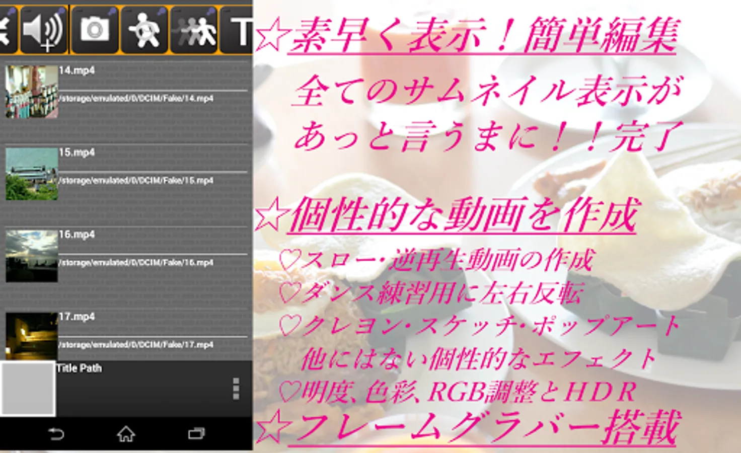 • In Android4.4 or more are external SD storage destination is limited. Because of this editing video will be saved in the internal SD.