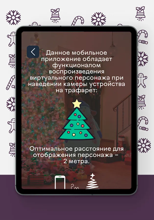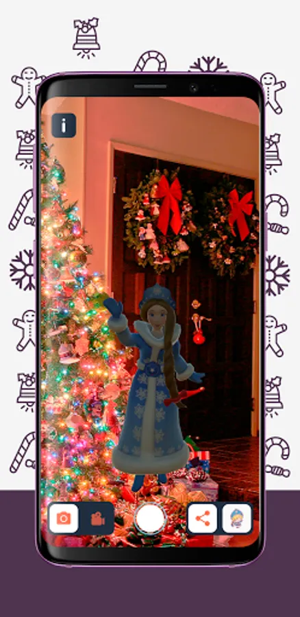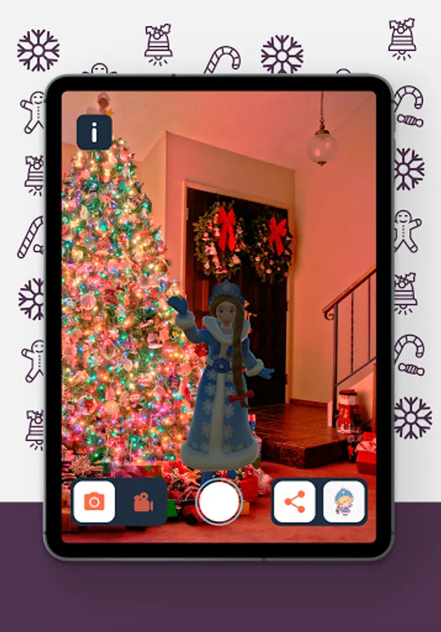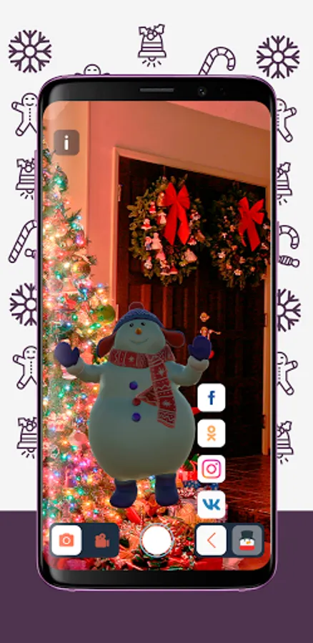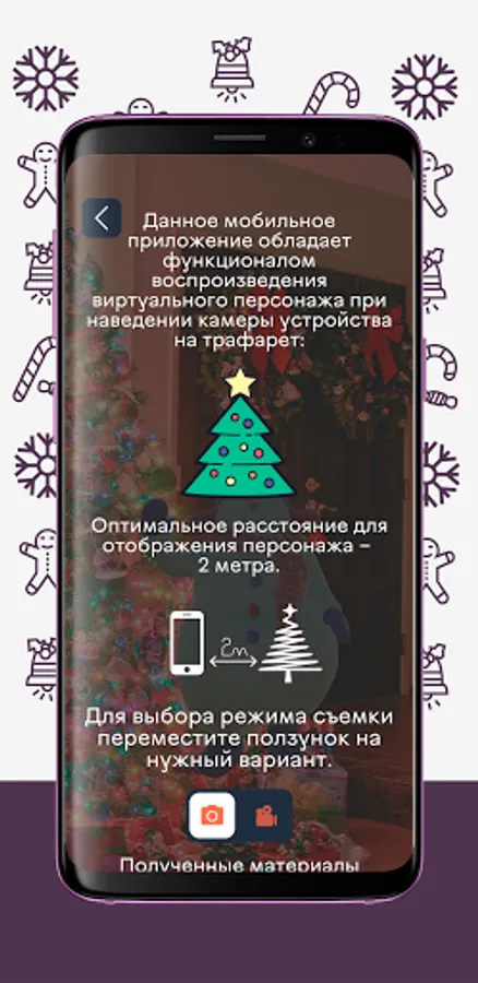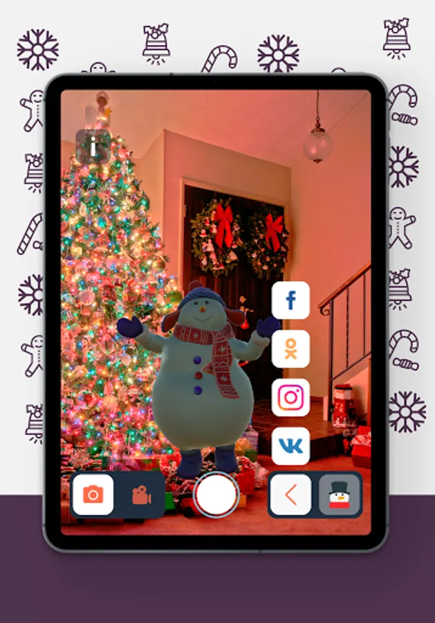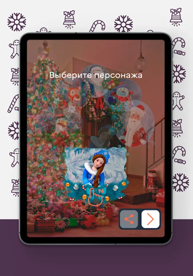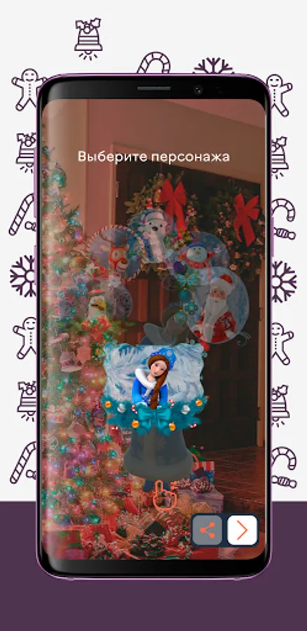 A mobile application with virtual New Year characters, with which you can take funny photos and videos for yourself and share your name on social networks.