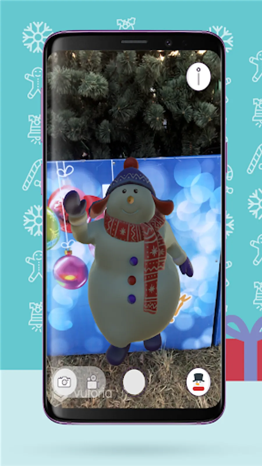 A mobile application with a virtual snowman, with which you can make funny photos and videos for social networks.