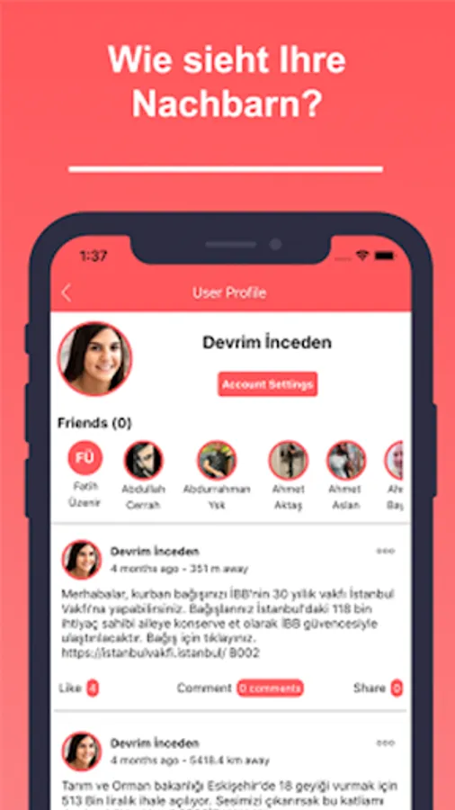 You can share anythings with anyone you know or don't know with Close Friend ; Komsu is a great local social media platform that keeps you up to date with developments in your area and helps you get to know the area you live in better.