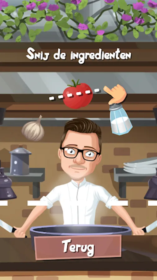Of course you do not just get the recipes from the top chefs of Orangerie De Pol, you have to do something for it! In this game you can unlock four home recipes from restaurant Orangerie de Pol to cook it yourself. In the levels you collect the right ingredients by literally chopping them into the pan.