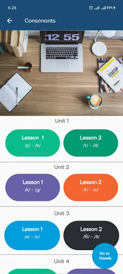 هذا التطبيق عبارة عن كورس كامل لصوتيات اللغة الإنجليزية ومدعم بمحاضرات وينقسم التطبيق إلي قسمين: