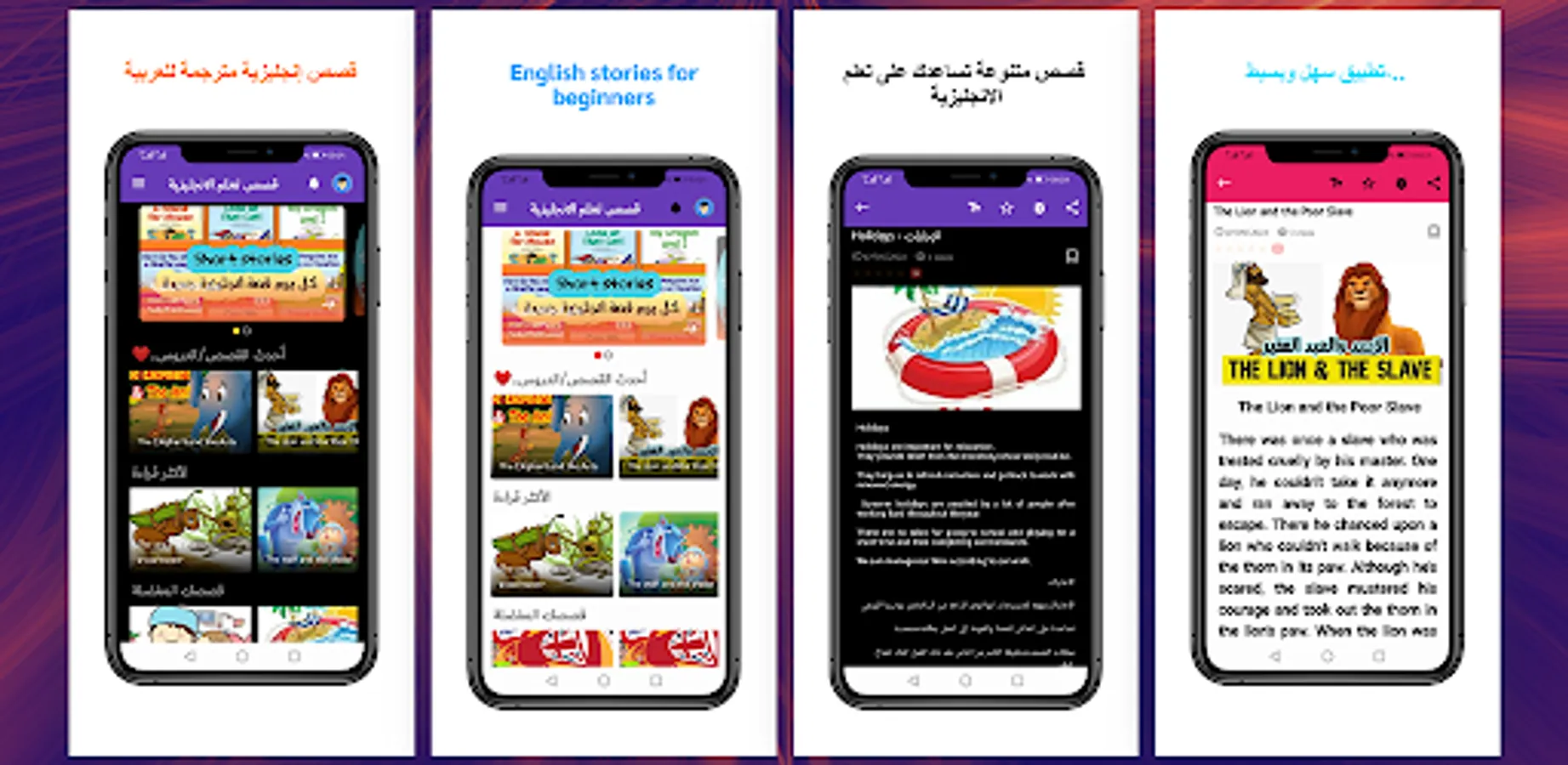 It is an application specialized in publishing English learning stories translated into Arabic.
