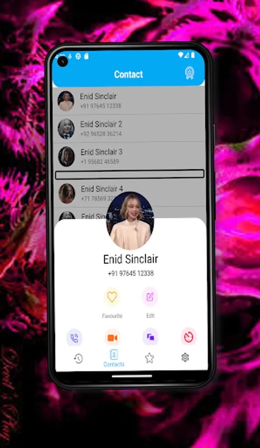 Make fun with your friends and family that Enid Sinclair is calling you but nobody knows that this is a prank you are doing with them. Make fun with a fake calling simulator with the Enid Sinclair characters. This fun-purpose app is here with a timer option when you want to receive calls from the Wednesday Addam. The play time character incoming call or outgoing call will be for fun to make your boring time into a funny one.